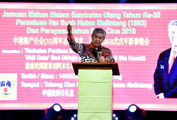Beliau berkata demikian ketika berucap pada majlis makan malam bersempena sambutan ulang tahun ke-35 Persatuan Hai Suah Hutan Melintang dan Perayaan Tahun Baharu Cina 2018 di sini pada Rabu.
